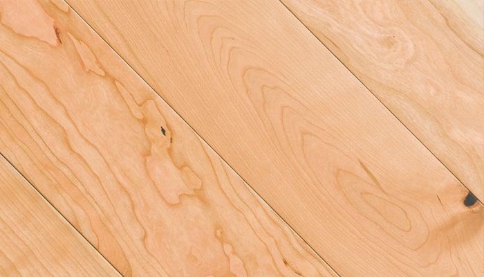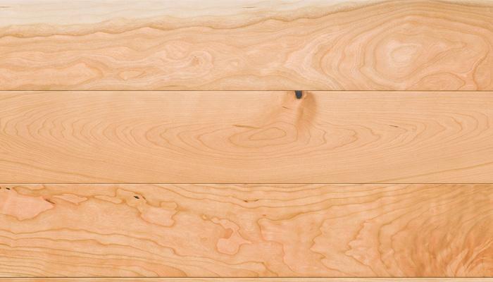 ブラックチェリーの床暖房対応合板フロアです。収縮しにくい合板の上に無垢材の3mm挽板単坂を使用しています。節・白太をあえて表面に使用することで、ナチュラルでワイルドな仕上がりになっています。
