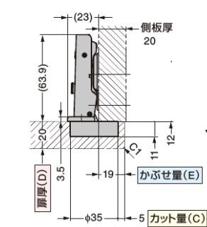 • 家具金物 スライド丁番360-C26/19T 360-P6W座金付き ビス付き