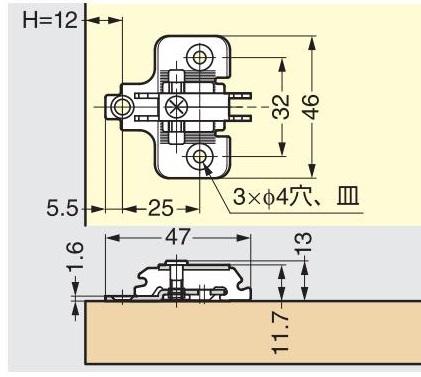 4.  » スライド丁番230-C26/0T 座金230-P4W-30T付ビス付